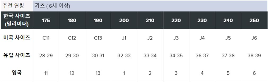 크록스 공식 사이트에서 추천하는 사이즈 표 입니다. 찾는 사이즈가 없다면 한단계 큰 사이즈를 선택하면 무리 없다라는 평이 많습니다. (예: 175가 없다면, 180 선택)