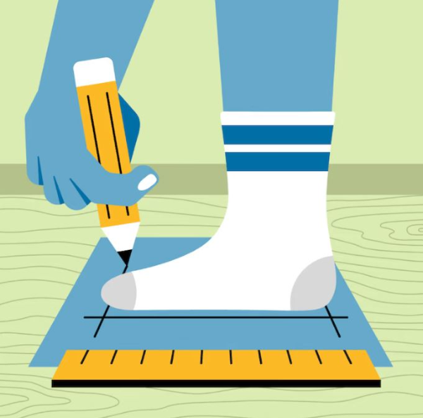 3. 발뒤꿈치부터 발가락의 끝부분까지 선으로 표시하여 길이를 측정해 주세요.